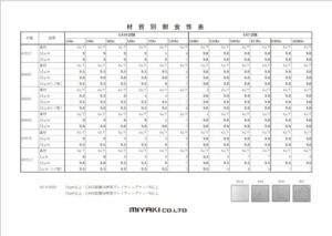 詳細な原データ(全時間・全材質)はお問い合わせフォームよりご請求ください。