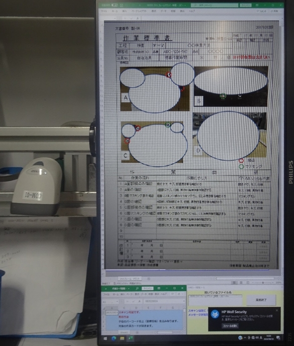 普段行っているバーコードを読み込むという行為のみで標準書を呼び出す事が可能となりました。